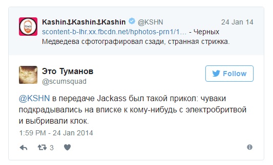 Похожая ситуация уже возникала три года назад, когда Медведев прибыл с частично «голым» затылком на встрече со студентами в МИСиС. Тогда по «модному пробору» проехались блогеры, предположив, что второе лицо государства кто-то побрил в шутку на какой-нибудь вечеринке. Тогда вопрос разрешило сообщение в микроблоге от девушки, близкой к заму Медведева – якобы волосы просто были так причесаны, что создавался эффект «недобритости».