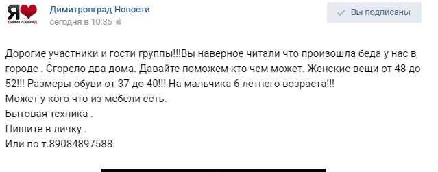 Оставшиеся без крыши над головой погорельцы просят помочь, кто чем может. Нужна одежда (женские вещи и для мальчика шестилетнего возраста), мебель и бытовая техника.
