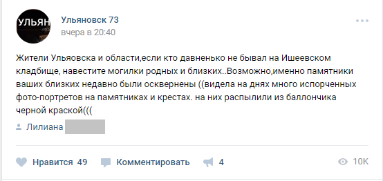 Сообщение вызвало массу резких комментариев в адрес людей, осквернивших захоронения. Многие спрашивали, в какой конкретно зоне кладбища наследили вандалы.