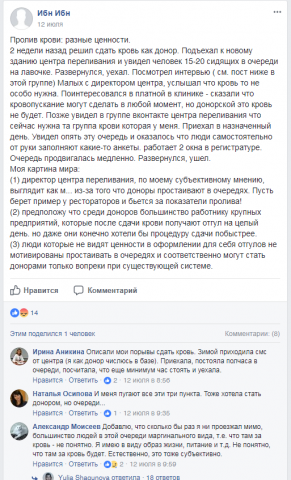 Летом адвокат Алмаз Кучембаев захотел стать донором, когда увидел, что его группа крови нужна пациентам ульяновских больниц. Отправился на областную станцию переливания, где его смутили очереди и необходимость оформления бумаг от руки. Об этом написал в соцсети. Все бы ничего, если бы не фраза «Директор центра переливания, по моему субъективному мнению, выглядит как м….к»