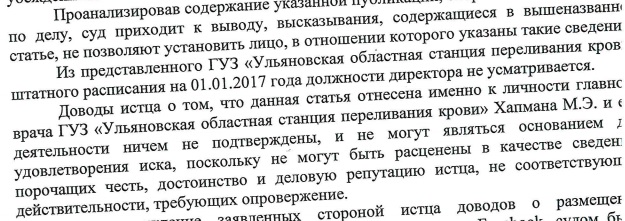 Проанализировав пост и собранные истцом доказательства, суд пришел к выводу, что указанные сведения не позволяют установить лицо, к которому обращено слово, вызвавшее негодование Хапмана. Более того, в штатном расписании станции нет даже должности директора.