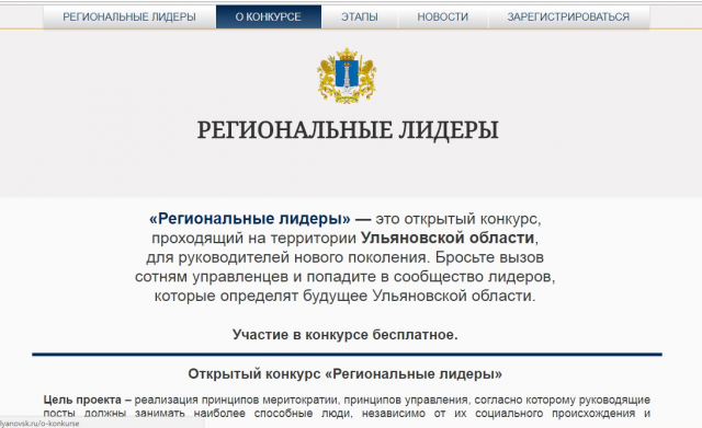 К слову, Губернатор Ульяновской области Сергей Морозов объявил свой конкурс по отбору кандидатов для «новой, профессиональной и справедливой власти» - открытый конкурс «Региональные лидеры», который, ну очень сильно похож на конкурс «Лидеры России».