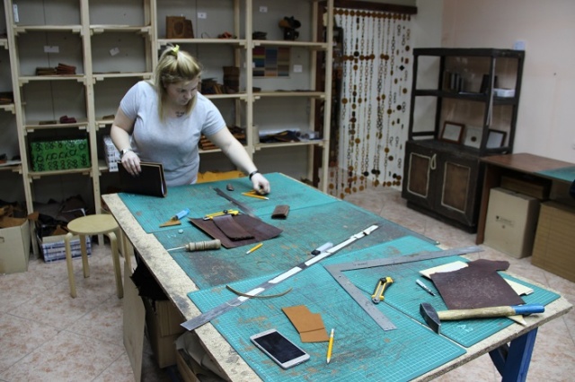 Г-жа Емелина рассказала, что бизнесом занялась неожиданно для самой себя - как бы, вдруг. Просто когда появился ребенок, поняла, что надо открывать свое дело, и тут-то наклюнулся вариант поработать с кожей. С тех пор, уже 11 лет мастерит обложки для паспортов и записных книжек, кожаные футляры для фляжек, ремни и сумки – словом, все, что можно подарить на день рождения.