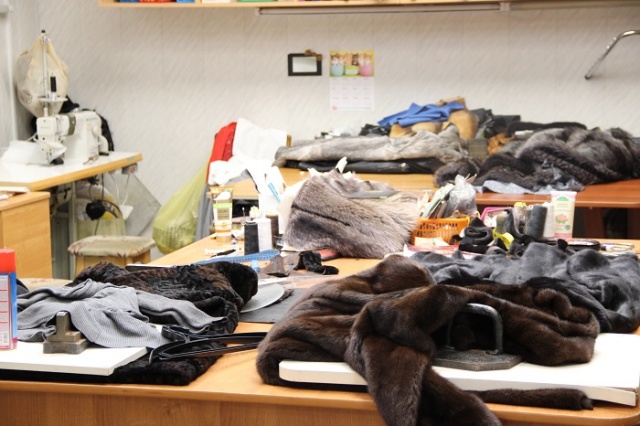 На второй точке удалось изнутри посмотреть на работу авторского ателье «Кузина-белошвейка» (ООО «ШиК»). В помещениях мастерской царил творческий беспорядок: на столах выкройка, обрезки мехов и линейки; на манекенах – готовые и неготовые наряды, на вешалках - вещи на продажу. По словам директора ателье Ирины Маловой, стоимость одной шубы – порядка 30 тысяч рублей.