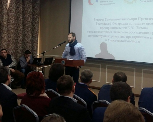 Бывший уполномоченный по правам предпринимателей в Ульяновской области Анатолий Сага внес драйва. Постепенно распаляясь, он предложил рублем наказывать должностных лиц, по вине которых предпринимателям был нанесен ущерб. Как оказалось, по его требованию в отношении неназванного лица уже возбуждено уголовное дело по статье 169 УК, и Сага попросил Титова проконтролировать, чтобы дело «не было спущено на тормозах». Остался экс-омбудсмен недоволен и действиями регионального Минсельхоза