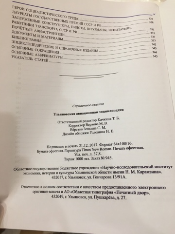 Книга в 345 страниц рассказывает о развитии авиации и авиационной промышленности в Ульяновской области. Справочное издание создано НИИ экономики, истории и культуры Ульяновской области имени Н.М.Карамзина. Составители энциклопедии обещают читателям полные сведения о предприятиях авиационной отрасли региона, об аэропортах и самолетах, которые представлены экспонатами в музее гражданской авиации.