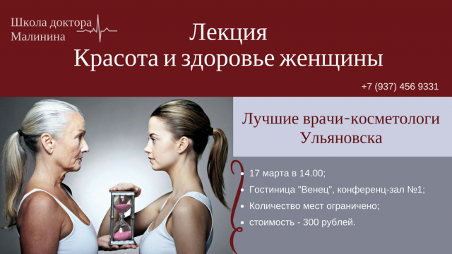 17 марта опытные врачи Ульяновска проведут лекцию "Красота и здоровье женщины", где расскажут, в чем же секрет молодости и красоты.