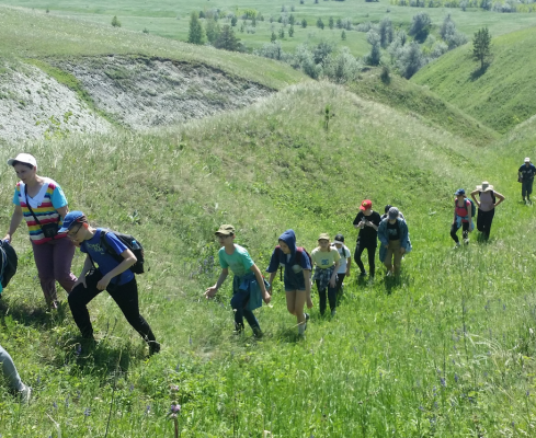 Экологическая тропа «По следам сурка» начинается вдоль склонов меловых холмов, которые являются средой обитания сурка-байбака. Юные туристы с большим интересом слушали рассказ о повадках и образе жизни этих животных и наблюдали за появлением сурков из своих нор.