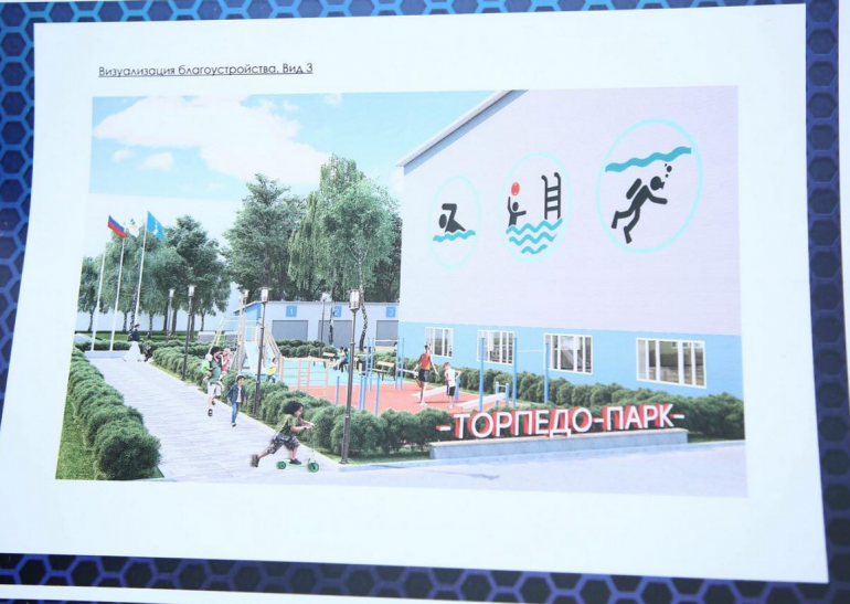 Что касается благоустройства территории возле здания, то, по словам Морозова, площадка должна включать в себя спортивные сооружения для уличных видов спорта, а подъездные пути к бассейну и пешеходные зоны должны быть максимально безопасными.