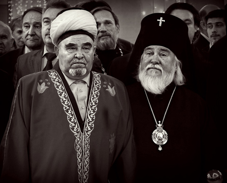 Муфтий Регионального Духовного управления мусульман Ульяновской области Савбян-хазрат Сулейманов и епископ Ульяновский и Мелекесский Прокл на инаугурации мэра Ульяновска Александра Пинкова.